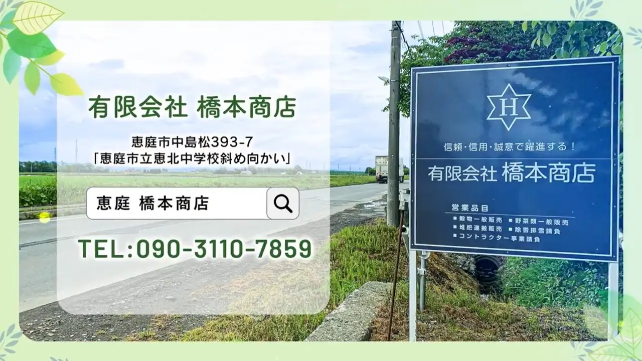| 事業内容 | ・穀物一般販売 ・野菜一般販売 ・堆肥運搬販売 ・除排雪請負 ・コントラクター事業請負 |